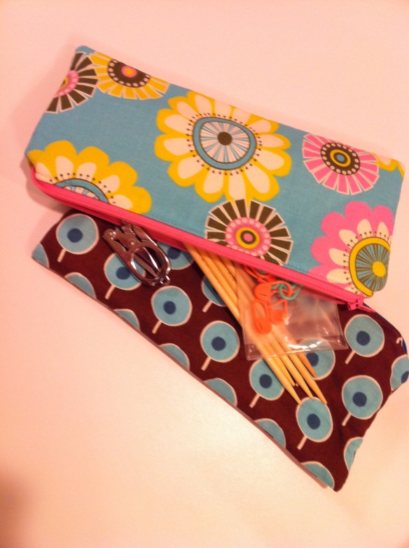 I sew just about anything, but for this show you will see lots of pouches to store all those miscellanous knitting gadgets, needle rolls, circular organizers, small draw string project bags, tote bags, large project bags.