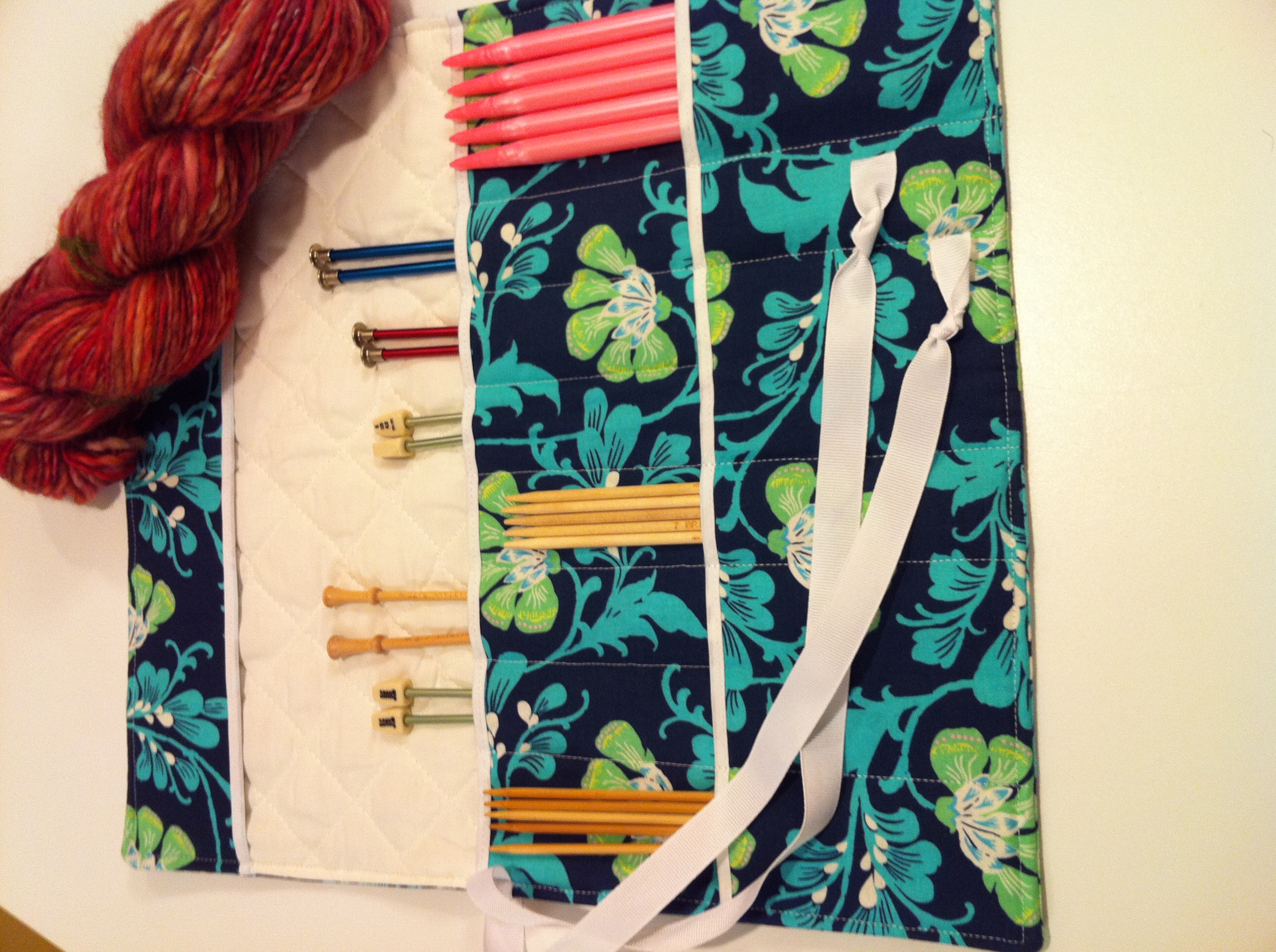 Yarn is my passion and I’m a knitter at heart but I just never had much interest in designing items since everyone else does it so well. I’ve been interested in sewing for many years but was always “scared” of the machine. One day, after moving to Pittsburgh in 2005, an idea for a circular needle organizer popped in my head and the rest is history.