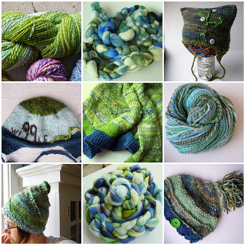 I dye 6 lines of semi-solid wool and wool/mohair yarns, hand dyed falkland top for spinners, and I write patterns. I also have a book – Knit One, Embellish Too.