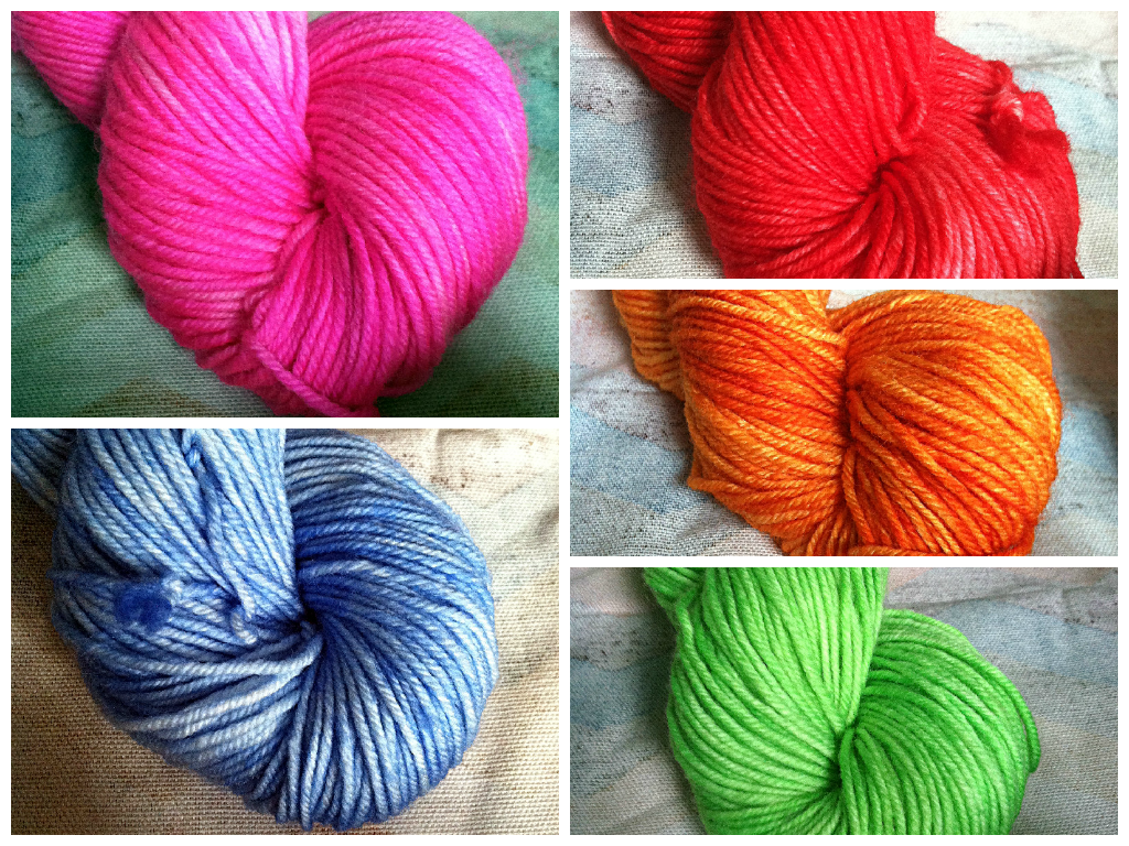 Kettle dyed, variegated, self striping and color shifting yarns.
