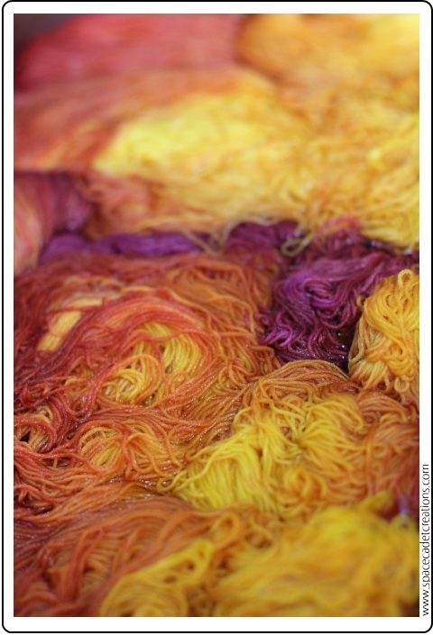 What, you mean besides the fact that yarn is slowly beginning to take over my entire house?!? Yeah, being a dyer impacts everything — the way I look at the world, the visuals I try to capture and hold onto, even the way I relate to people. If I sit down to talk with somebody, it kind of feels weird if we’re both not knitting too. Do you know, it still blows me away when I realise there are people out for whom knitting and crocheting are somehow old fashioned?!? Having yarn in my hands is just so natural to me, I don’t really get how it can not be as natural for everyone else too!