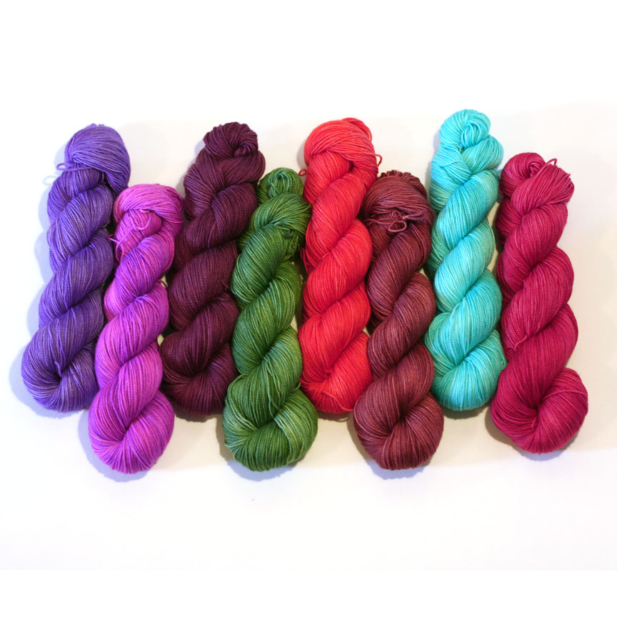 Since last year’s show, I’ve added a number of new colorways to my line up, including several new six, seven and eight striping colorways. These larger striping sequences are more of a challenge to dye, but the results are so worth the effort!