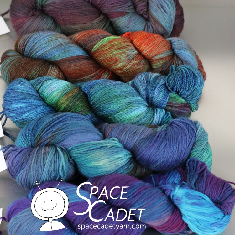 At SpaceCadet yarn, we passionately believe that knitting and crocheting make people happier, deep down inside, and that nothing does that more than working with gorgeous, vibrant yarn. For us, dyeing is a cosmic adventure. We start with high quality yarns and luxurious fibers — merino wool, silk, linen, and bamboo — to begin the wonderful process of mixing our dyes by hand and seeing where the colour takes them . The result is yarn and fiber that is as exciting to work with as it is for us to create.