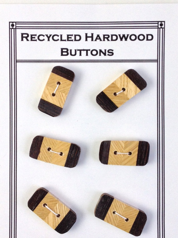 I make reclaimed hardwood buttons from old rulers, instrument boxes, broken furniture, children’s blocks and wood workers scraps. The buttons are made in series and when the source material is exhausted the series is complete. For this reason all of the wood buttons are limited editions.