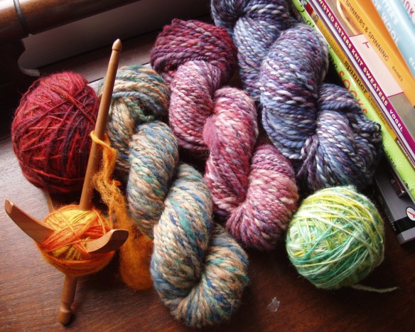Handdyed/handspun yarn; handdyed roving, top, locks; knitwear using my handspun yarn