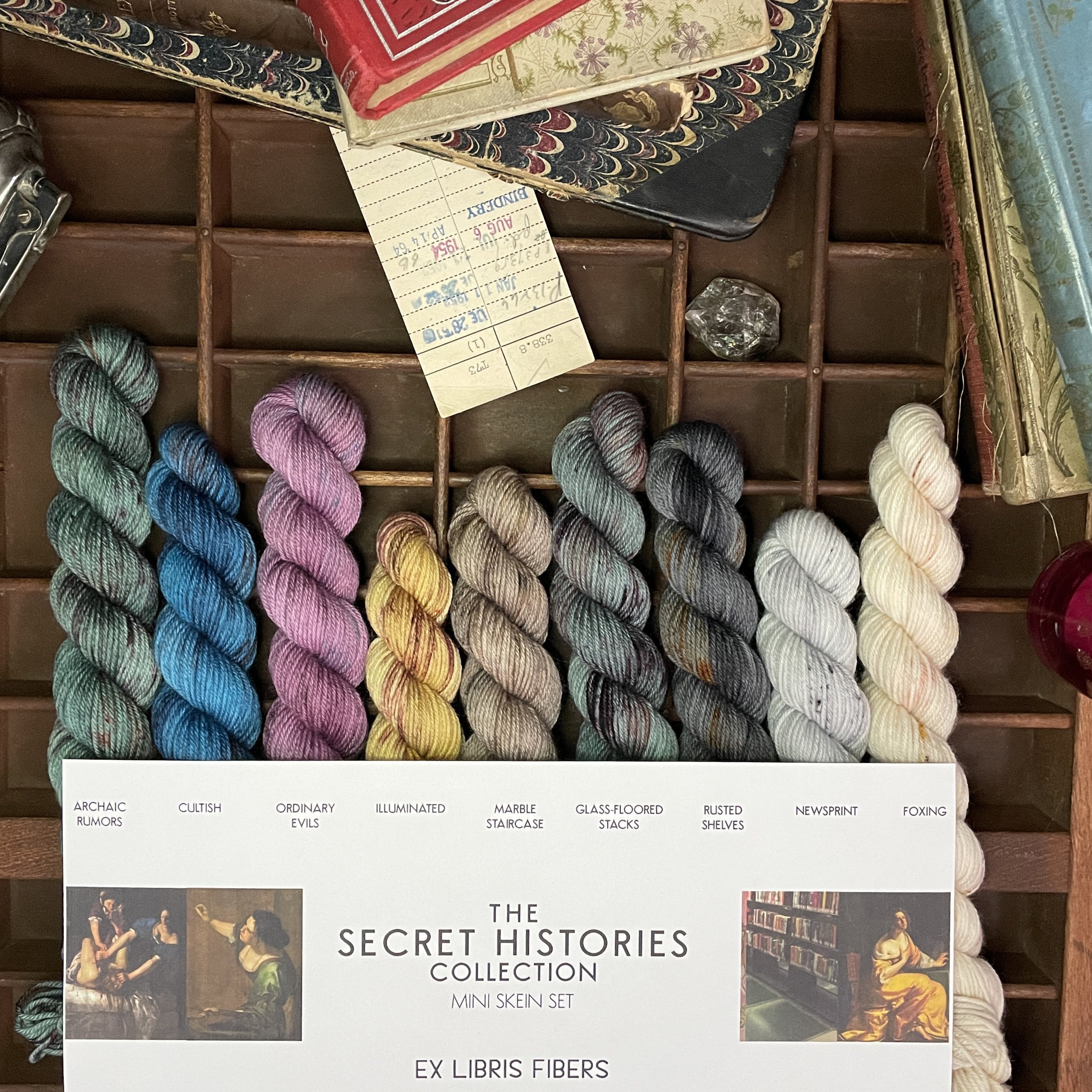Ex Libris is a Latin phrase found on bookplates that translates to “From the Library.” Ex Libris Fibers yarns are bookish, moody, and sometimes spooky colors dyed by a former librarian, Rita. Based in Pittsburgh since 2018, Rita translates undershared stories and themes into intricate, layered colorways that might just haunt your dreams.
