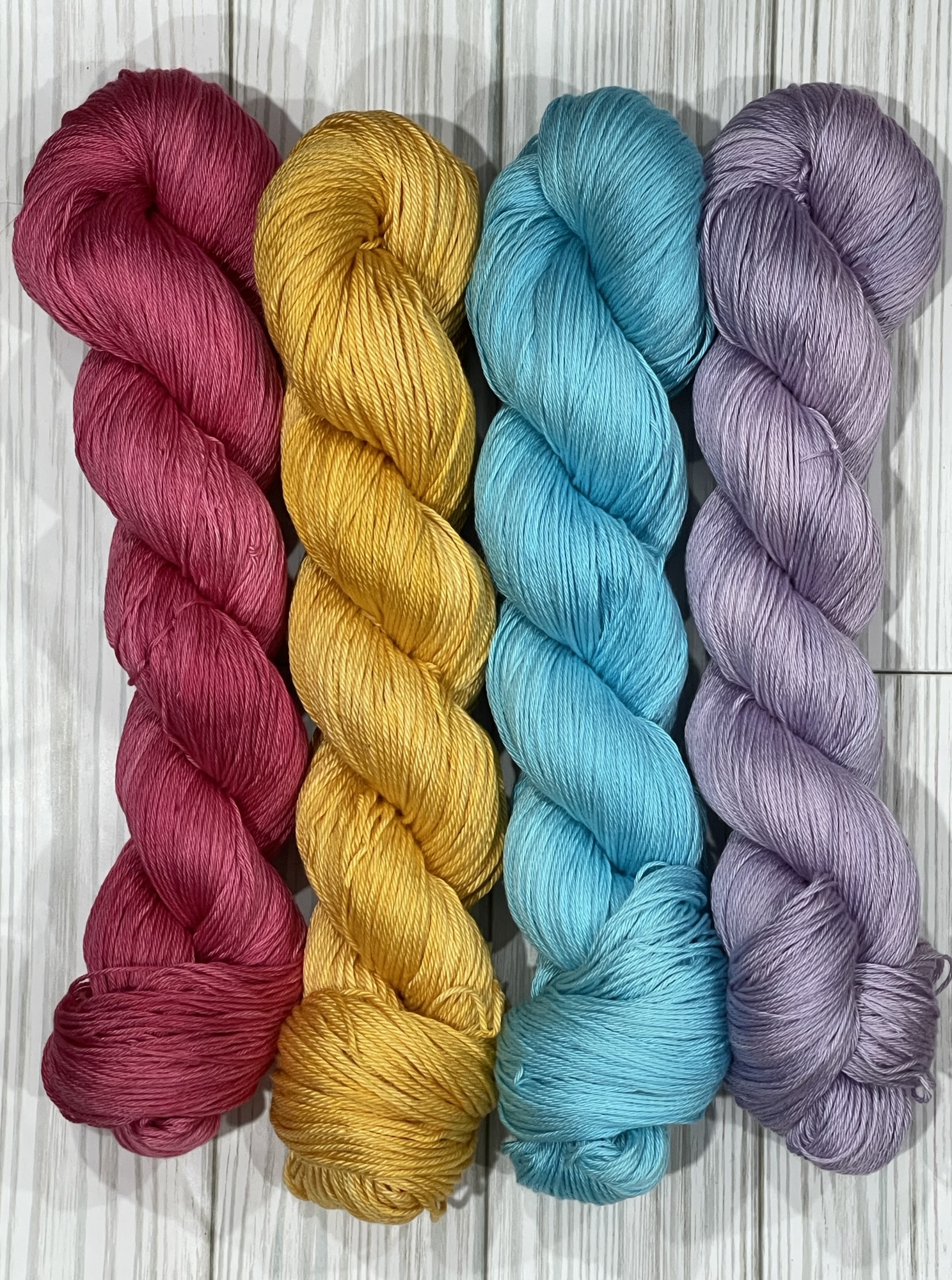 We are a husband and wife yarn dyeing team that get our colorway inspiration from our life experiences and those of our family. Everything from vacations, to college graduations, to the state park near our house may show up in our skeins of yarn.