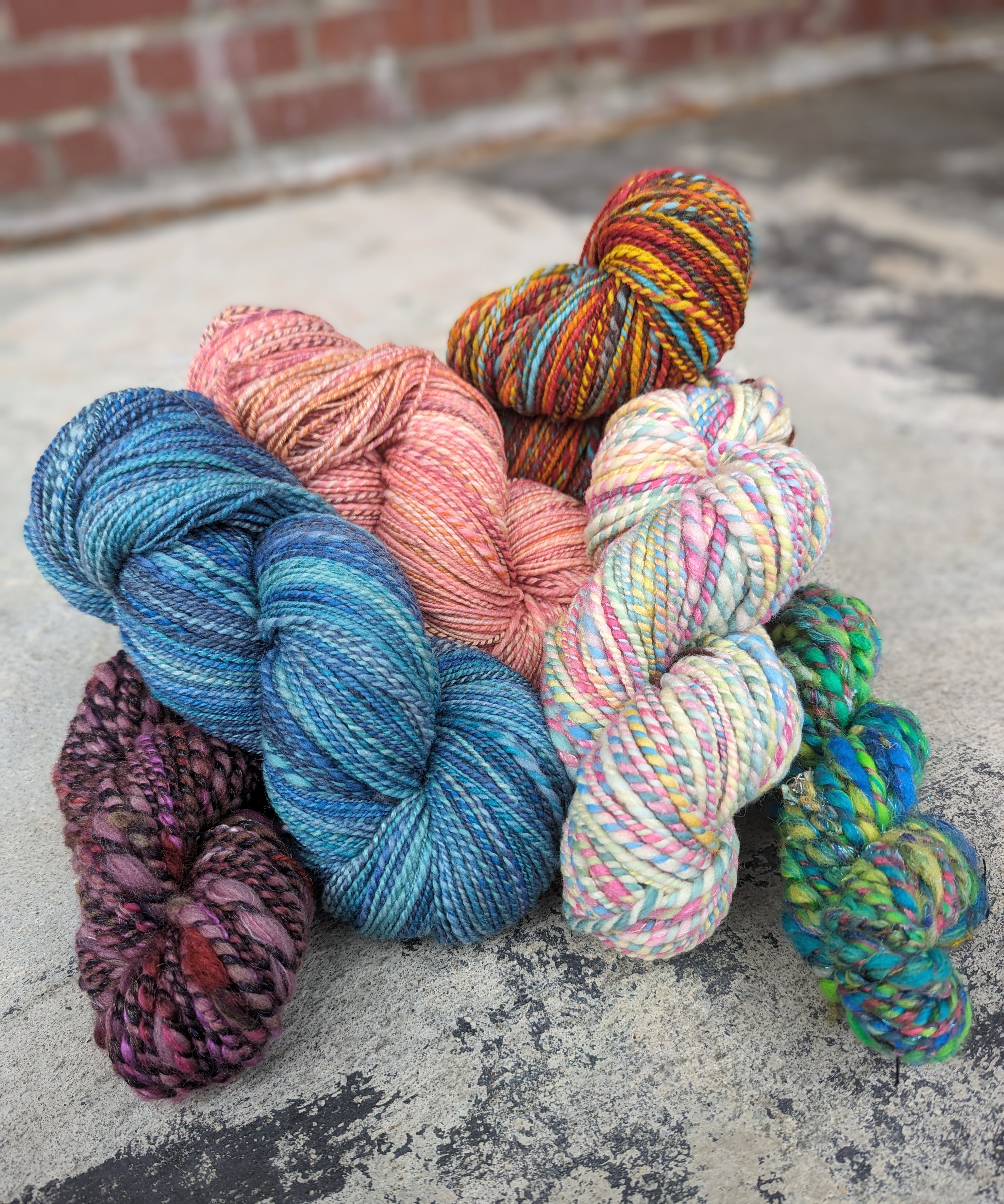 At Gwen Erin Natural Fibers we focus on micro-batch handdyed fibers & yarn. We offer combed top, carded roving, and handmade batts. In addition to breed-specific wools, we use silk, mohair, alpaca and other specialty fibers. Whether you spin, weave, knit, crochet, or felt, we’ve got what you need. Collect your building blocks and create something truly unique!
